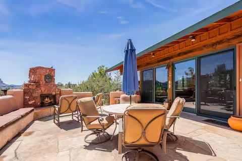Enjoy two luxurious king master suites with spa-style baths, multiple patios for lounging and dining, a starlit hot tub, and open-concept living spaces designed for gathering with loved ones. With stunning views from every window, Silver Sage is the perfect place to relax, recharge, and experience the magic of Sedona.